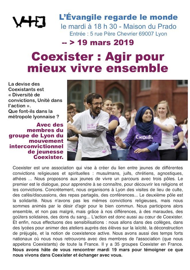 Coexister : Agir pour mieux vivre ensemble. Les membres de Coexister, que font-ils dans la métropole lyonnaise ?